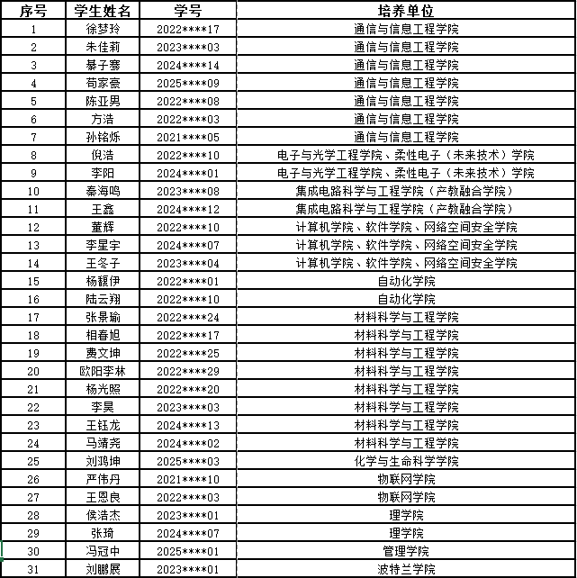 根据《南京邮电大学研究生国家奖学金评审实施细则(修订)》,经个人申报、学院评审公示、学校审核,下列同学拟获得2025年研究生国家奖学金,现予公示。