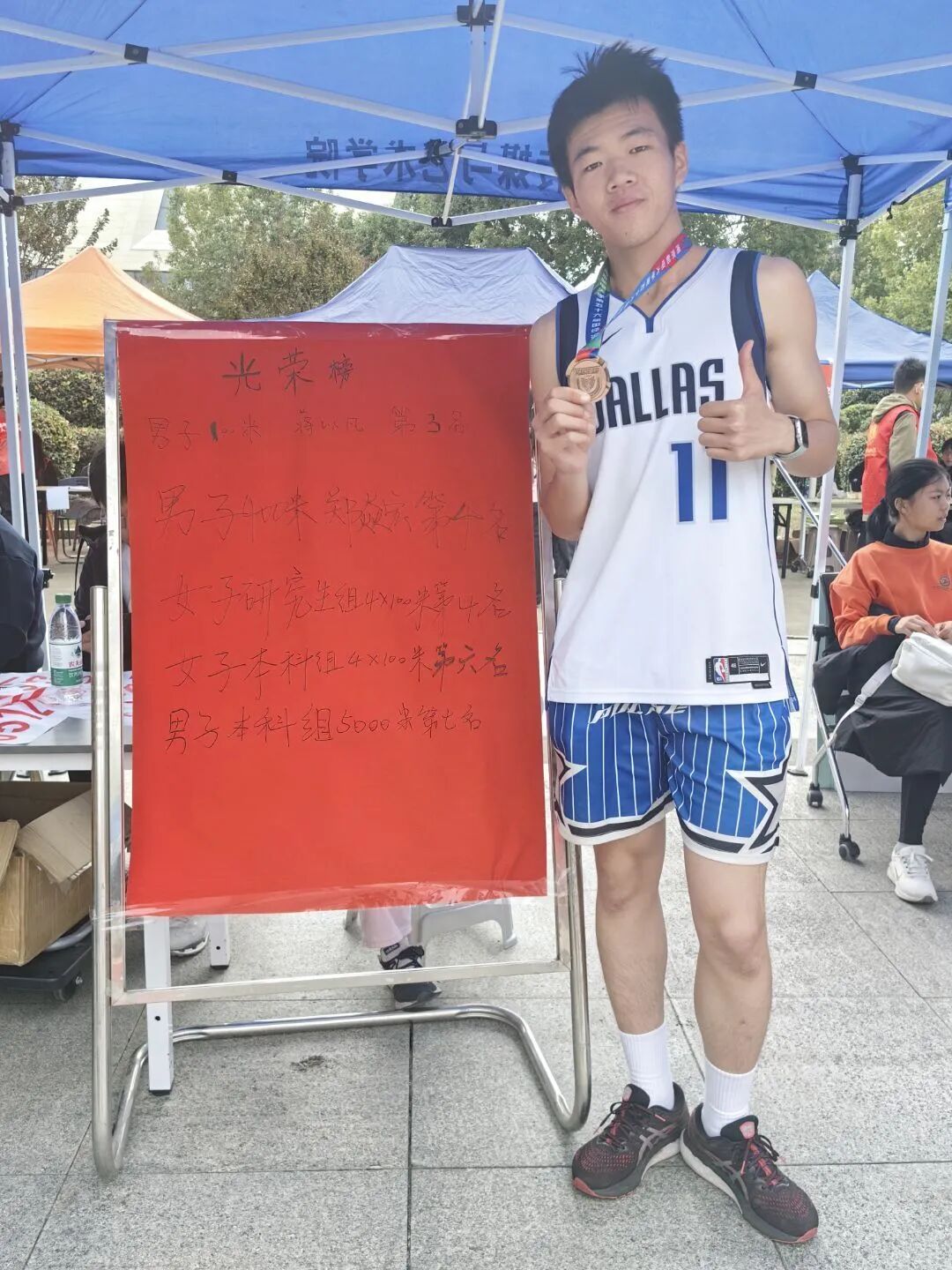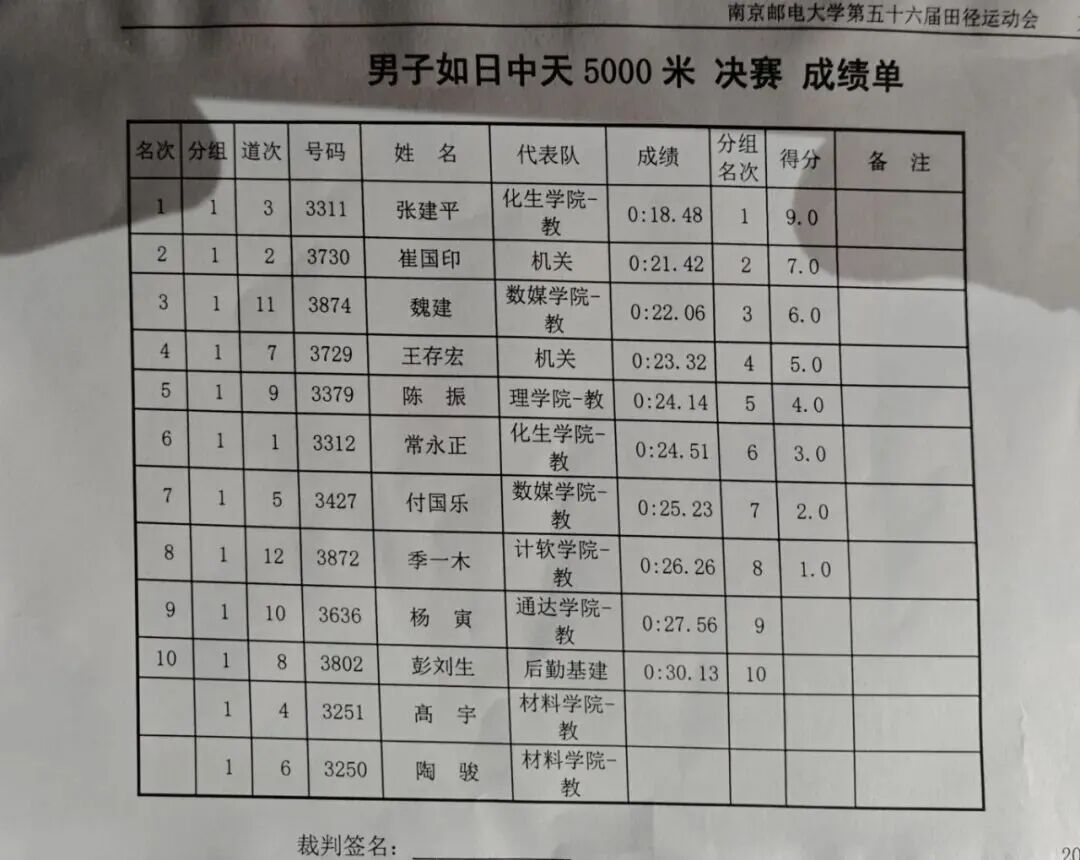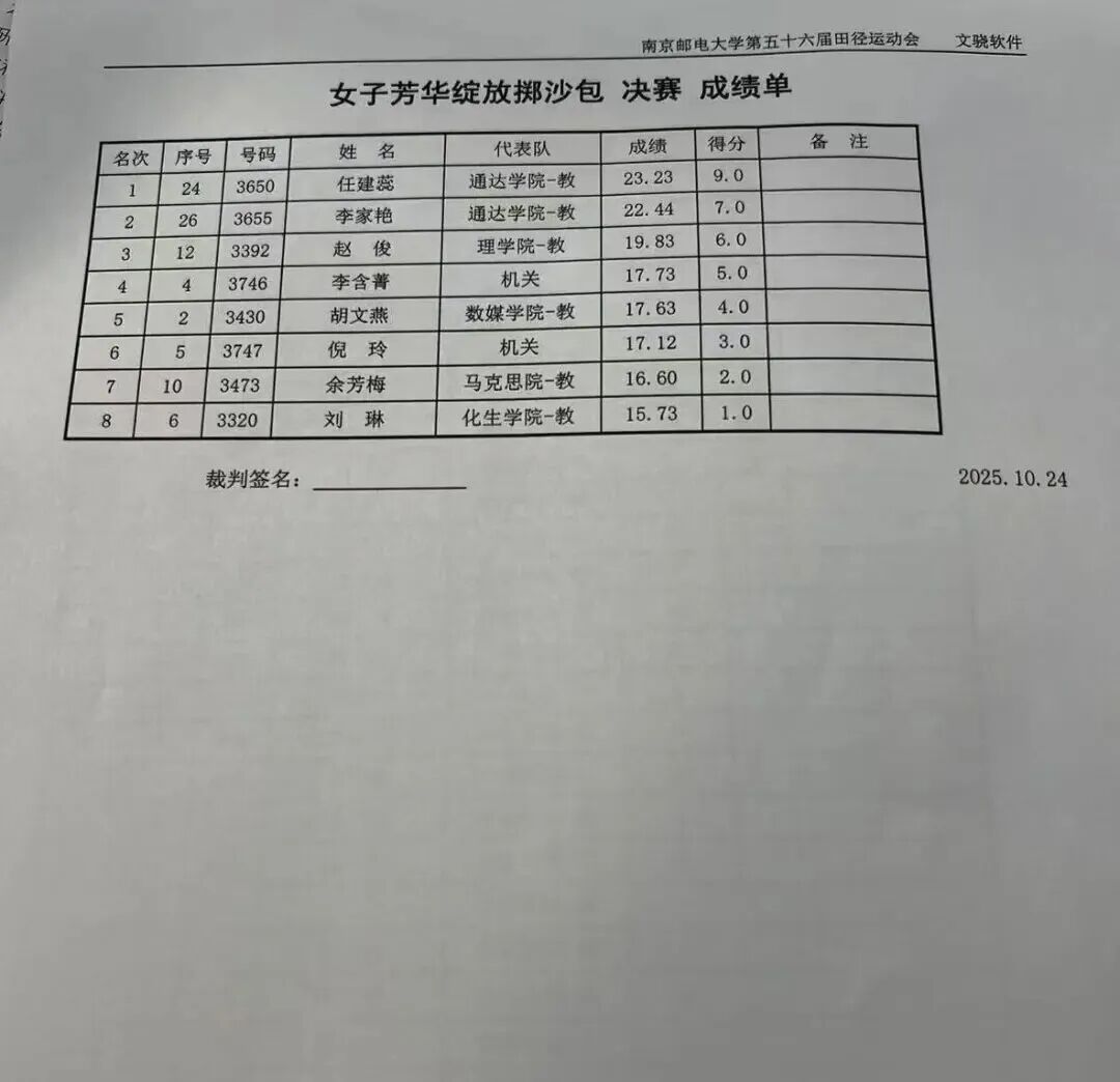 不仅学子们在赛场上挥洒汗水,运动的激情,同样在教师队伍中澎湃。在本次运动会中,老师们全力投入、奋勇争先,用行动诠释了何为“躬耕教坛”亦能“强健体魄”,在男子如日中天 5000 米决赛中我院教师魏建以22.06的成绩夺得第三名,付国乐老师以25.23的成绩荣获第七名;在女子芳华绽放掷沙包决赛中胡文燕老师最终以17.63荣获第五名的好成绩!讲台上,他们是传道授业的良师;赛场上,他们是奋勇拼搏的榜样!