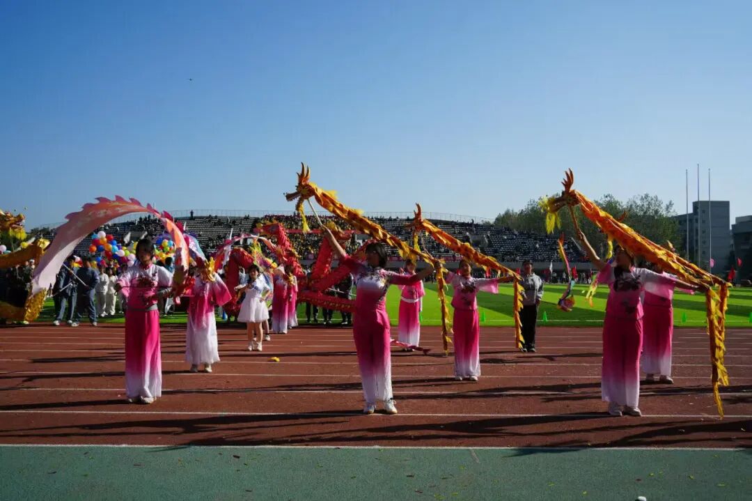 鼓声如雷,势如破竹,龙首高昂,神采飞扬。数字媒体与设计艺术学院的舞龙舞狮表演,瞬间点燃秋日的赛场。吸引全场目光,拉开了气势磅礴的序幕。彩狮欢腾跃出。它们眼眨眉动,活灵活现,或憨态可掬,或威武勇猛。狮身与鼓点完美契合,在高难度的闪转腾挪间,展现出无与伦比的力与巧,收获全场的掌声。