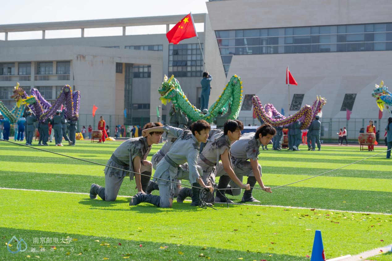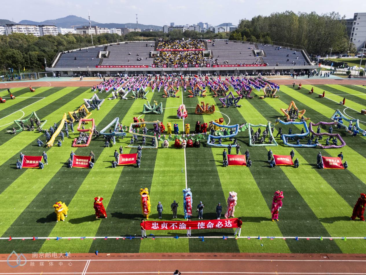 为纪念中国人民抗日战争暨世界反法西斯战争胜利80周年,深入学习贯彻习近平总书记关于“用好红色资源,赓续红色血脉”的重要指示精神,数字媒体与设计艺术学院党委精心策划并组织开展了“龙狮演绎抗战史诗·艺心筑牢信仰根基”沉浸式党日活动。活动以学院研究生党员和入党积极分子为骨干,于10月24日南京邮电大学第五十六届田径运动会开幕式上,成功上演大型实景龙狮表演《正义必胜》,为全校师生呈现了一堂生动而深刻的“万人思政课”。
