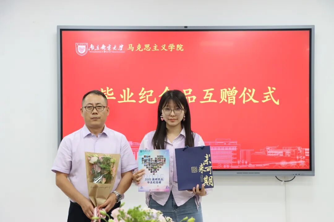心怀壮志扬帆远,不负师恩向九天。毕业纪念品互赠仪式上,为了感谢学院三年来的辛勤栽培,研究生毕业生共同向学院敬赠一座恩格斯雕像,学院领导和老师们也为同学们赠送了精心准备的“青春画像”纪念册和暖心大礼包,希望他们永远定格在青春的坐标系里,续写无限可能的空白页,更重要的是寄托着老师们对学子们的期望和祝福。