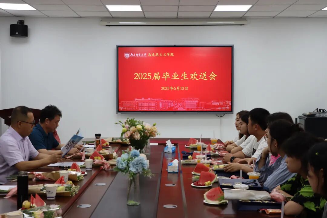 盛夏六月,骊歌悠扬。6月12日下午,马克思主义学院于文科楼330会议室顺利举办了2025届研究生毕业生欢送会。本次欢送会由学院党委副书记、副院长朱奎泽主持,学院党政班子、导师代表、研究生辅导员及2025届研究生毕业生齐聚一堂,在欢声笑语与泪光闪烁中,共同庆祝这一意义非凡的毕业时刻。