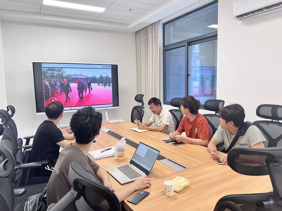 2025年9月3日上午,纪念中国人民抗日战争暨世界反法西斯战争胜利80周年阅兵在北京天安门广场隆重举行。南京邮电大学理学院研究生一支部和二支部共同组织在校硕博研究生党员集中收看,返乡同学云端同步观礼,以“现场+线上”方式共上一堂思政教育大课。同学们以学术之名集结,以青春之声致敬,共同见证这一载入史册的庄严时刻。