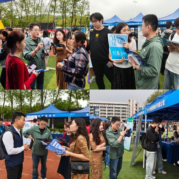 招聘会现场气氛热烈,来自不同行业的知名企业齐聚一堂,为毕业生们提供了丰富的就业岗位。肖书记一行人抵达现场后,随即深入各个招聘展位,先后与江苏卓胜微电子、盛合晶微半导体、中天科技、中磊电子、苏州超锐微电子、星恒电源、工业和信息化部电子第五研究所华东分所、国睿科技、南京熊猫通信、南京誉葆科技、南京熊猫电子、南京微通电子、无锡友利微电子、辰卓科技、臻鼎科技、拓维光电、友顺科技等约20家以集成电路领域相关专业毕业生为招聘目标的企业展开深入交流。重点了解了企业招聘需求、岗位要求以及人才培养计划,同时积极向企业推荐我院优秀毕业生资源,助力毕业生精准对接岗位。此外,肖书记一行还认真听取了企业对我院人才培养工作的建议,这些反馈将为我院后续优化人才培养方案、提升人才培养质量提供有力参考。