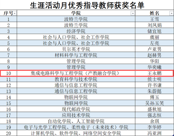 近日,由学校主办的职业生涯规划系列活动月圆满落幕。经过对简历大赛、招聘模拟大赛、职业生涯规划大赛校级决赛等系列活动的综合考评与专家严格评审,学校正式公布了生涯活动月获奖名单。我院凭借出色的组织工作与丰硕的育人成果,荣获“优秀组织奖”,我院王永鹏老师被授予“优秀指导教师”荣誉称号。