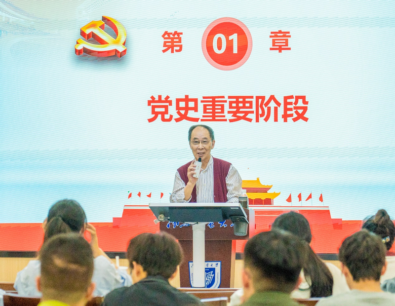 校关工委副主任颜福康老师讲授《铭记百年党史 坚守初心使命》“开班第一课”。颜老师从党史重要阶段、党的武装斗争、党的理论思想、党史重大事件、党的重要会议、党史之最这六个方面,深入浅出、生动系统地讲解了中国共产党的百年历史、百年奋斗和百年辉煌。最后,颜老师勉励同学们以史明鉴、以史促今、坚定信念,将学习党史的心得体会,转化为保持共产党员先进性的实际行动,转化为推动中国特色社会主义伟大事业不断前进的实际行动;不忘初心,牢记使命,坚定信念,永远跟党走!
