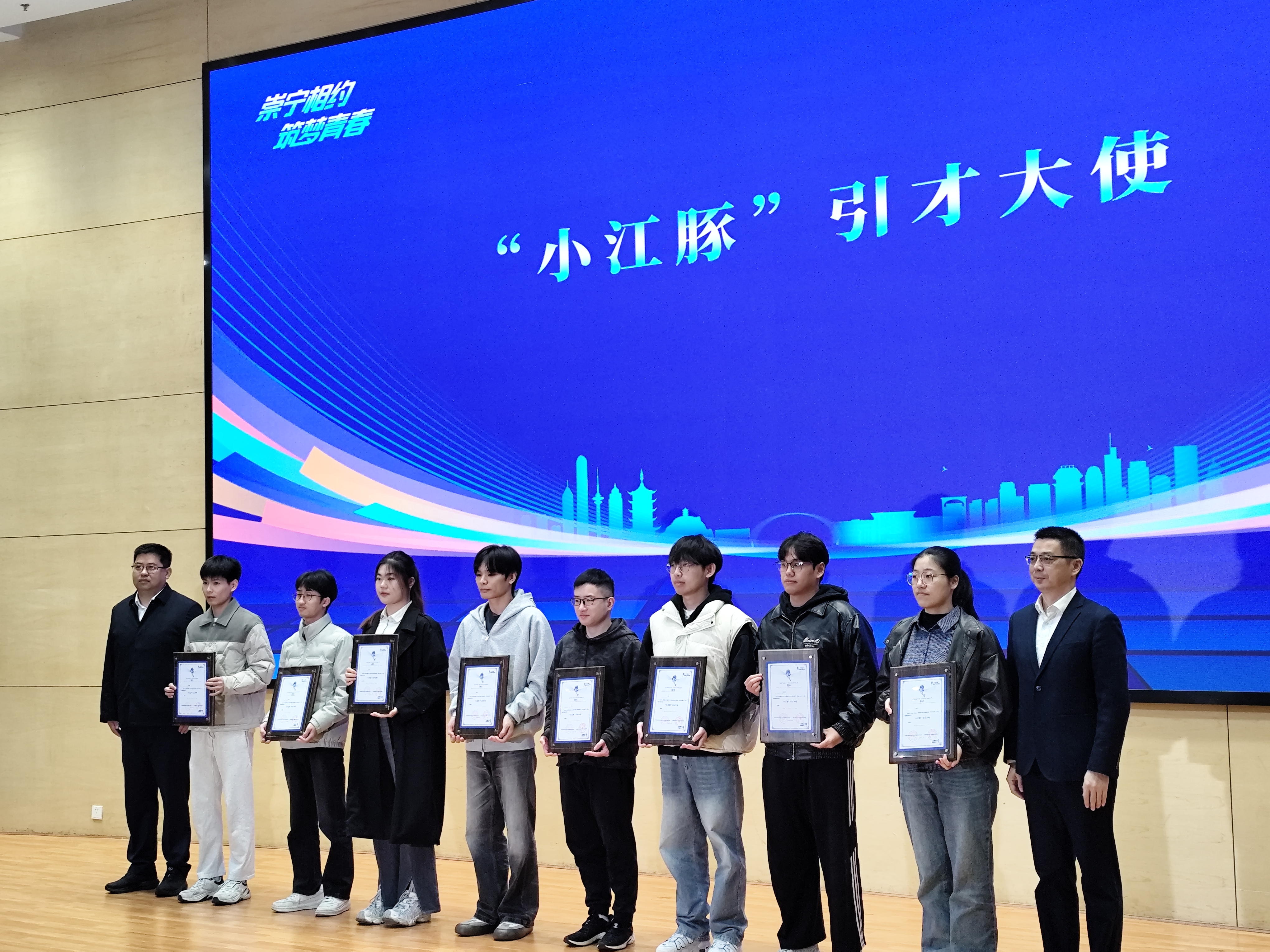会上,为崇川区科技镇长团之家揭牌,为往届崇川区科技镇长团团长发放“引才顾问”聘书,为南通籍在校大学生代表发放聘书。我支部曹志杰、王施涛、范雯怡、姚杰四位党员被聘为崇川区“引才小江豚”。
