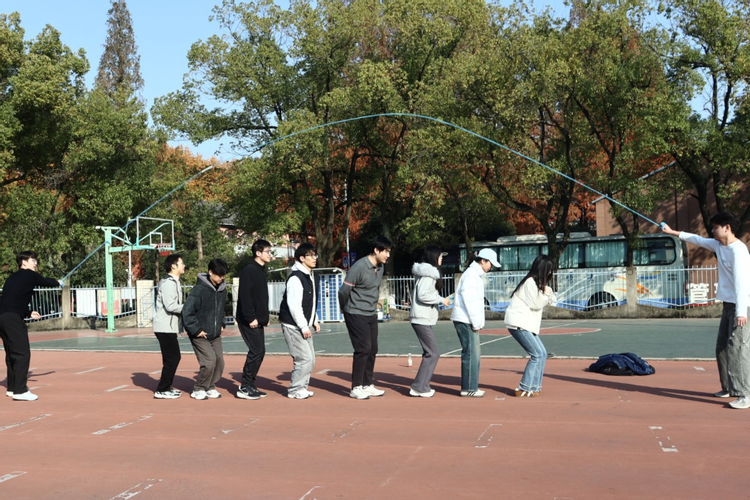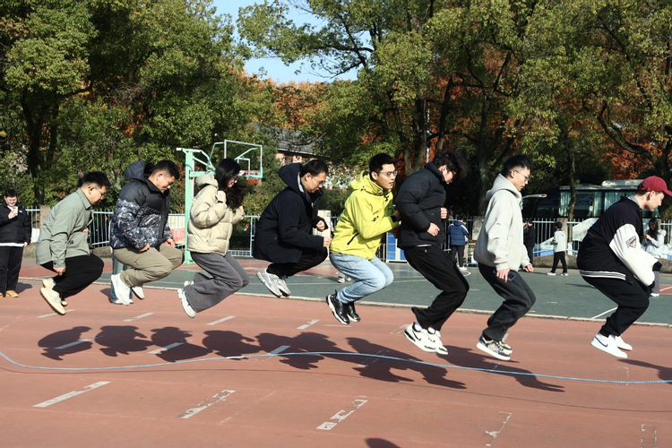随后开展的“党心凝绳·跃启新程”团体跳绳竞赛将活动气氛推向高潮。竞赛以小组为单位,每10人一组共5支队伍参与。比赛中,各组成员齐心协力、默契配合,展现昂扬斗志与团结协作精神。长绳划出优美弧线,队员跳跃身影与加油呐喊声交织,现场充满活力与欢笑。经过激烈友好角逐,第二小组与第五小组凭借出色团队协作获胜。这场活泼有趣的体育活动不仅锻炼身心,更在轻松氛围中拉近两支部成员距离,增强集体凝聚力。