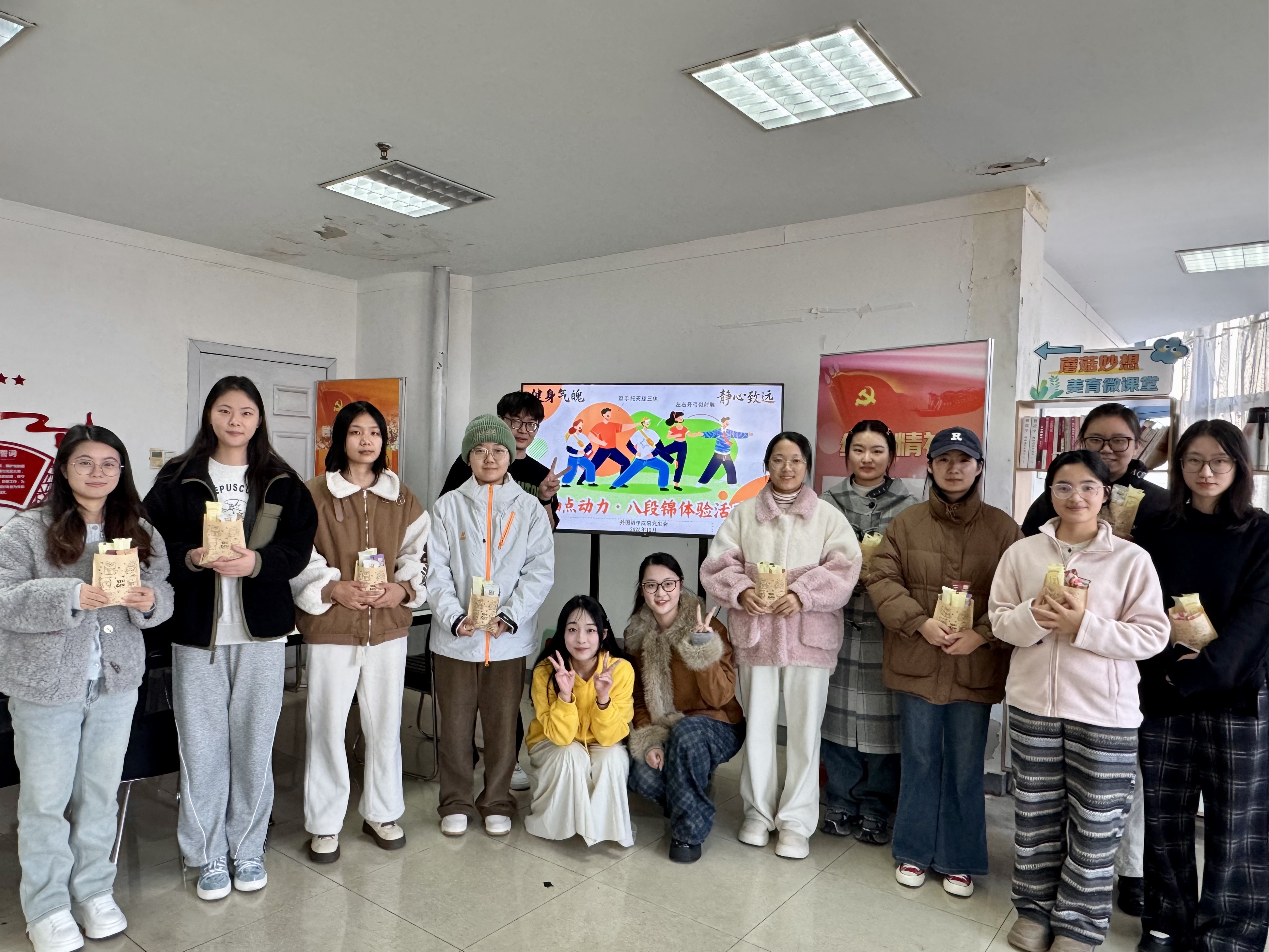 为深入践行“健康中国”理念,弘扬和传承中华优秀传统健身文化,提升研究生身体素质,12月4日,外国语学院研究生会文体宣传部在圆楼514活动室开展“柚点动力”八段锦体验活动。
