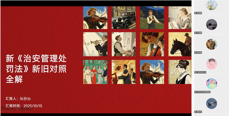 2025年10月10日,电子与光学工程学院、柔性电子(未来技术)学院面向2023级全体研究生举办新《治安管理处罚法》专题宣讲会。本次活动由2023级辅导员陆静如老师担任主讲,以“立法二十年首次大修”为背景,系统解读了该法的修订背景与核心变化。