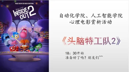 自动化学院、人工智能学院于3月19日晚18:30,在学校图书馆四楼报告厅举办“心海共振,情韵启帆”情绪心理健康电影赏析活动。本次活动精心挑选《头脑特工队2》作为主题电影,旨在通过这部充满想象力与情感深度的影片,引领同学们深入主角莱莉丰富多彩的情感世界,一同探索她在青春期这一人生重要阶段所遭遇的新挑战、经历的成长变化以及内心的情感波澜。