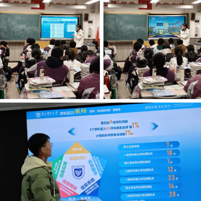 在宣讲活动中,团队成员不仅为大家带去了南邮的校园宣传活动,还精心准备了给学弟学妹的学习经验分享环节,结合自身的高考经历和大学生活,向学弟学妹们分享了高效的学习方法、时间管理技巧以及如何调整高考备考心态。
