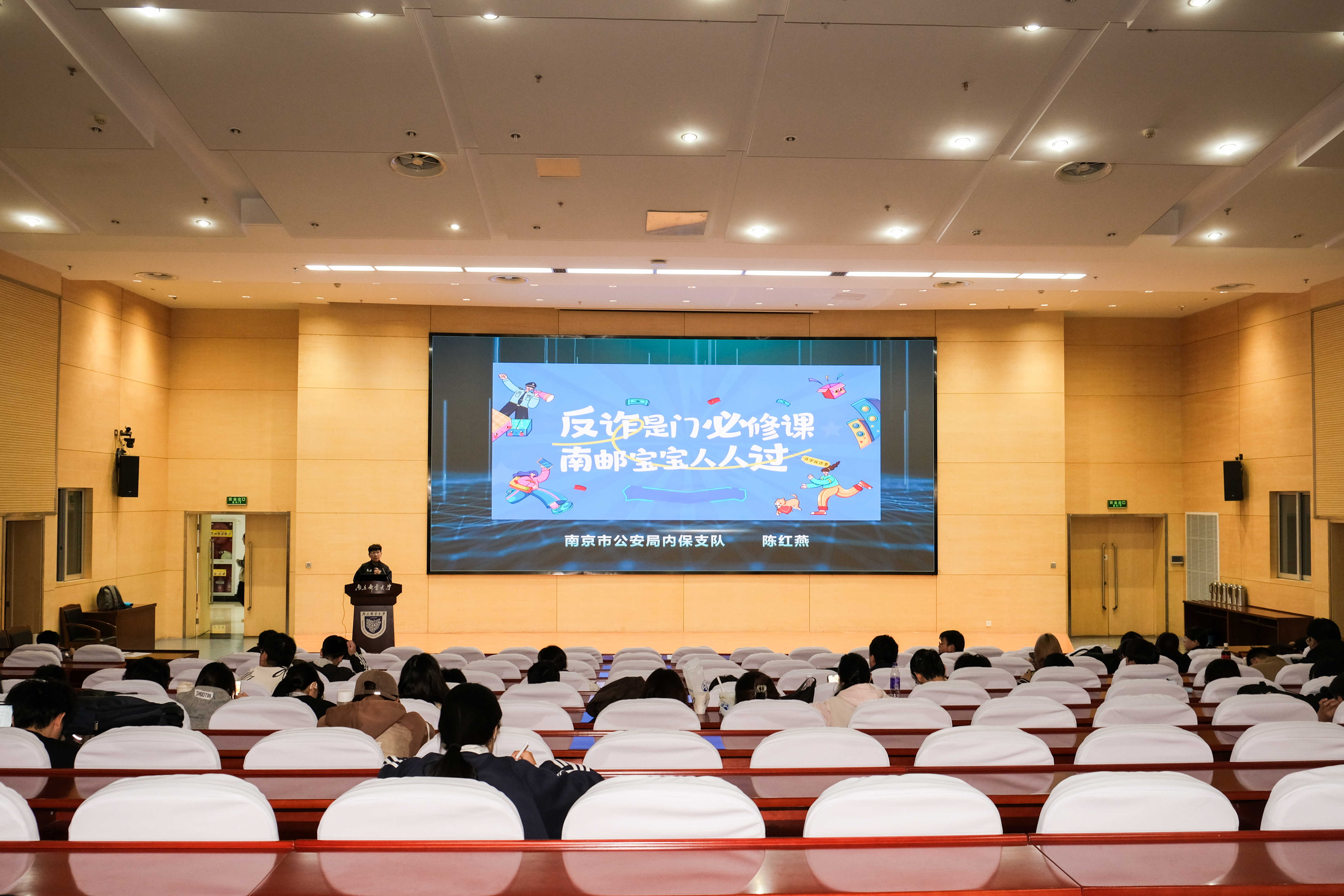 为有效提升学生防范电信网络诈骗的意识和能力,筑牢校园安全防线,11月6日,我院特邀南京市公安局陈红燕警官为2025级全体研究生新生举办反诈宣传教育专题讲座。讲座在仙林校区图书馆4楼报告厅举行,由25级研究生辅导员李娜老师主持,学院全体25级研究生新生参加。