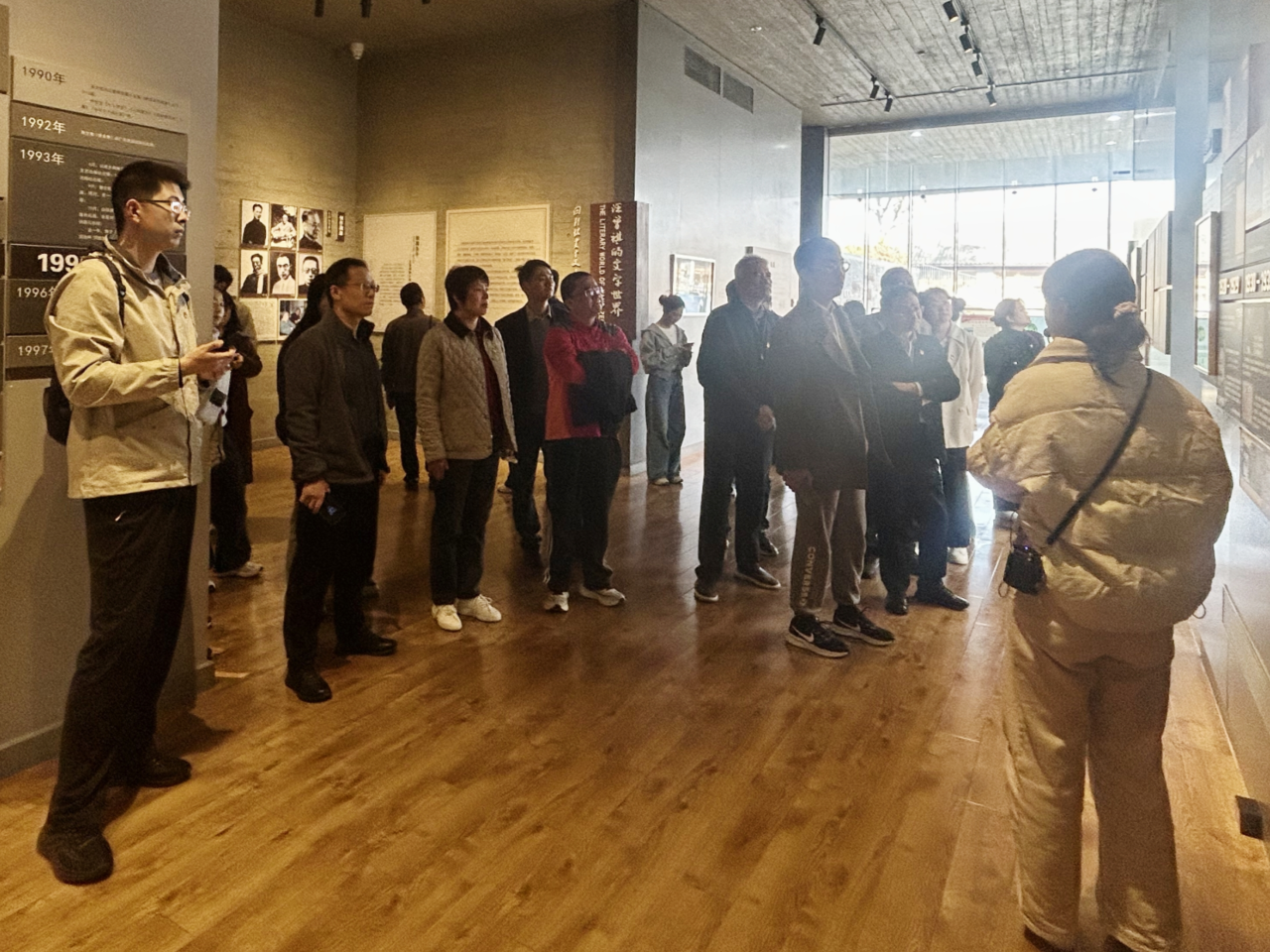 随后,校企党员们走进汪曾祺纪念馆,探访这位“高邮之子”的文学人生。馆内复原的书房实物、手稿信札,以及独具特色的旋转楼梯,串联起汪曾祺先生“人间烟火气”的创作脉络,也让大家触摸到高邮城市发展的文化根脉。校企党员们在展品前轻声交流,从文学作品中感受地方文化的温度,更体会到“以文化人、以文聚力”的时代价值。