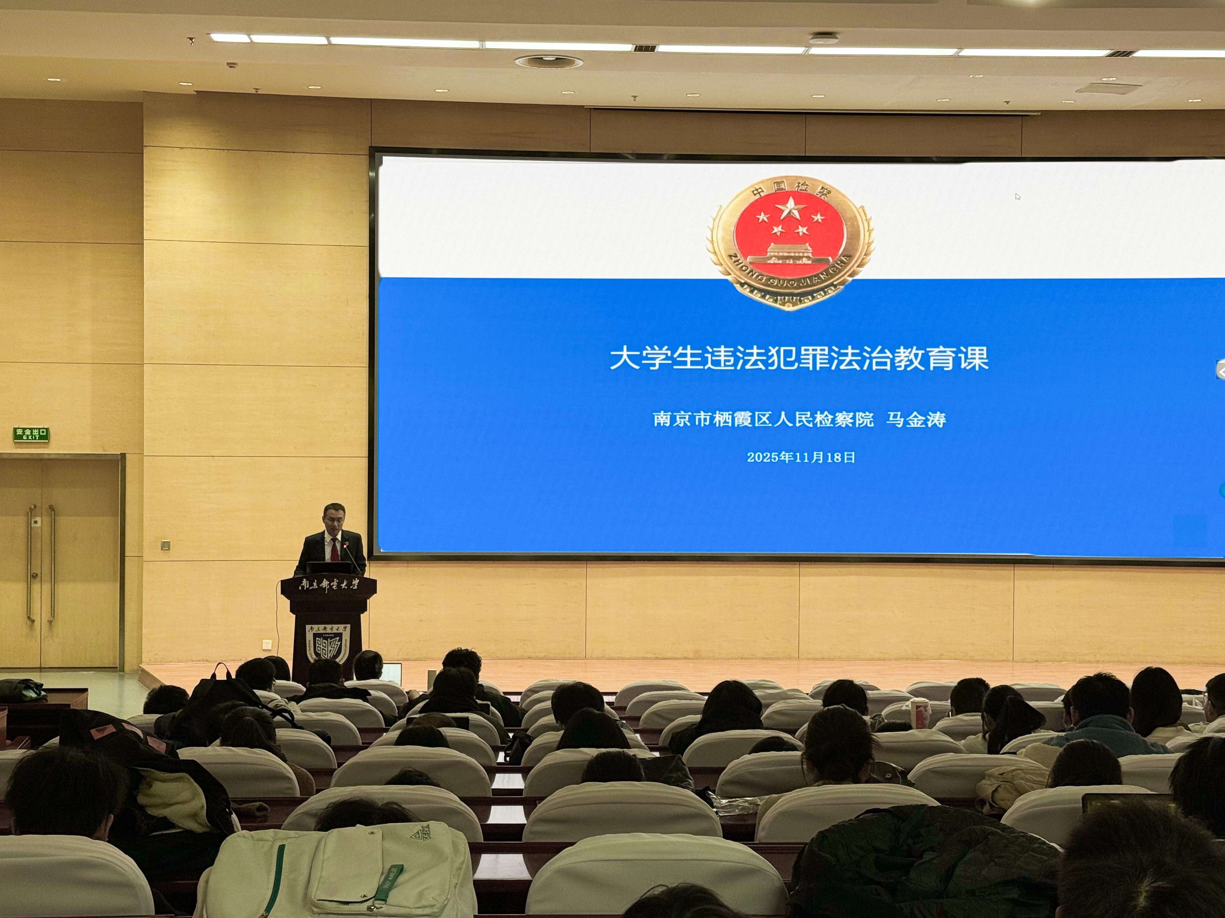 为加强学生法治教育、筑牢校园法治防线,11月18日,材料科学与工程学院特邀南京市栖霞区人民检察院检察官马金涛做“大学生违法犯罪法治教育”为主题的法治安全教育专题讲座。讲座从学生违法犯罪的影响、警示教育案例、违法犯罪的预防等多个层面展开。学院党委副书记、副院长吕蔷蔷,分团委书记、2025级研究生辅导员李娜以及2025级研究生新生参加讲座。