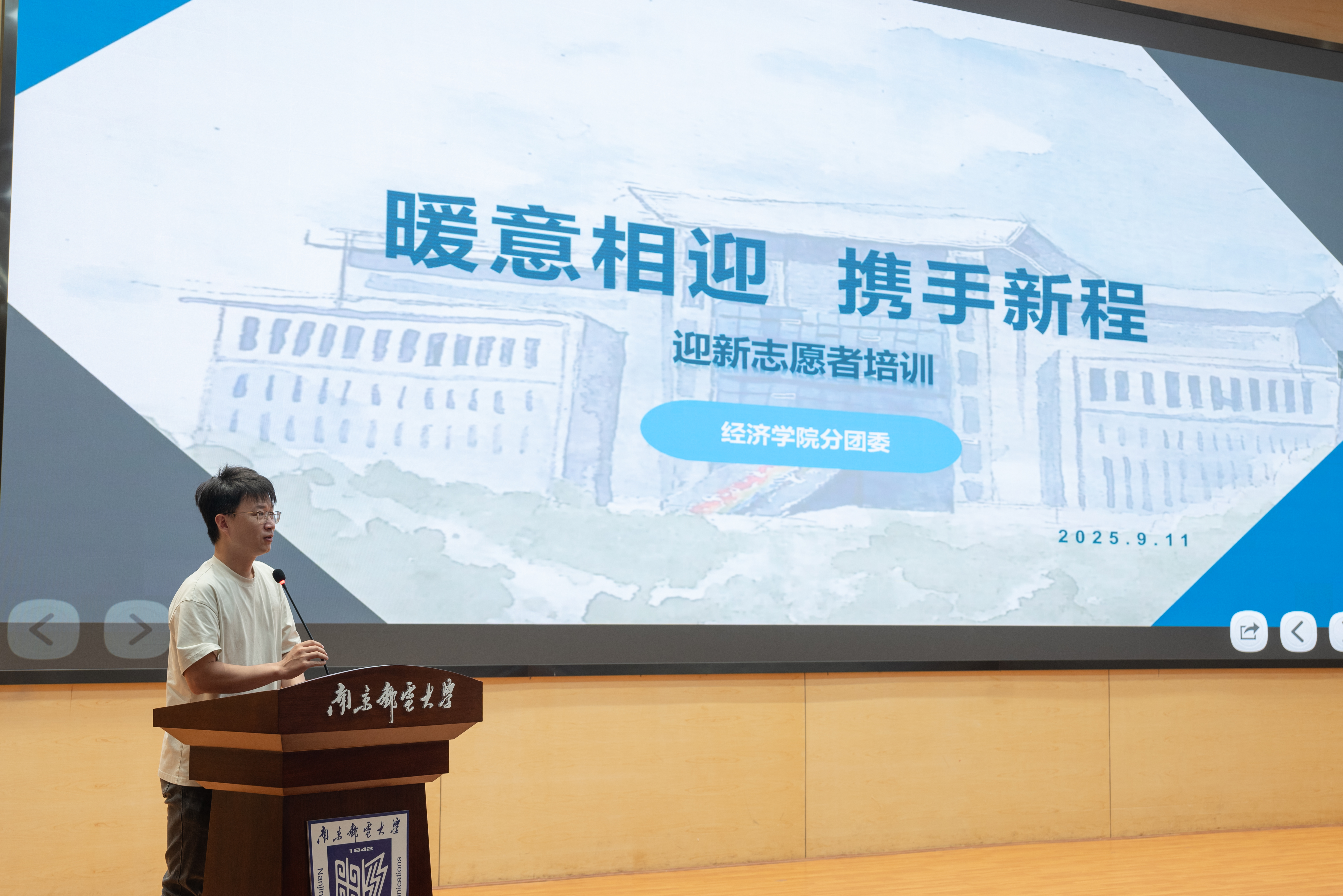 为进一步增强迎新志愿者的服务意识、服务质量和服务水平,增强迎新志愿者服务的专业性,保障新生入学工作顺利开展,9月11日,经济学院在仙林校区运满满报告厅召开迎新工作志愿者培训会。学院党委副书记、副院长吴迪,2024级本科生辅导员周洪山及全体迎新志愿者参加了此次会议,会议由学院分团委书记尤波主持。