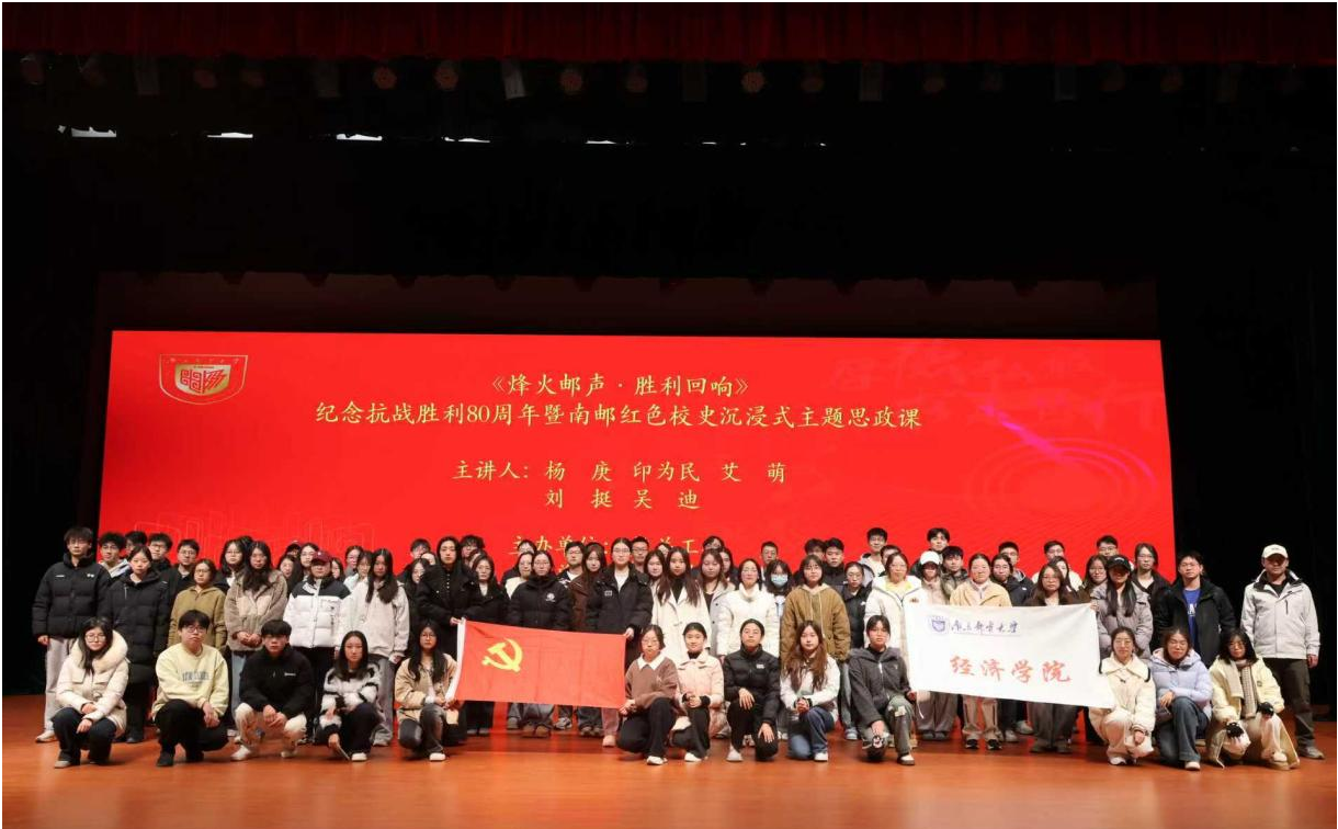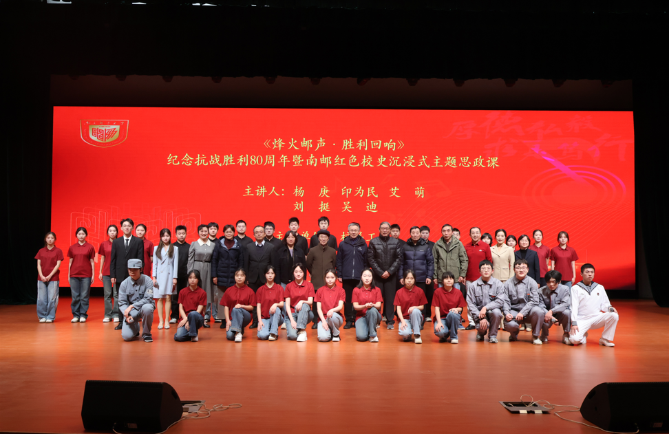 课程在全体演职人员与观众高唱《我和我的祖国》的嘹亮歌声中圆满落幕。本次沉浸式主题思政课以艺术浸润心灵,以历史启迪未来,不仅是一堂生动的爱国主义教育课,更是一次深刻的校史校情教育。它成功引导广大青年学子在回望烽火邮路中汲取精神力量,在缅怀先辈功绩中坚定理想信念,激励新时代南邮人自觉将个人奋斗融入国家发展和民族复兴的伟大征程,赓续红色血脉,书写无愧于时代的青春篇章。