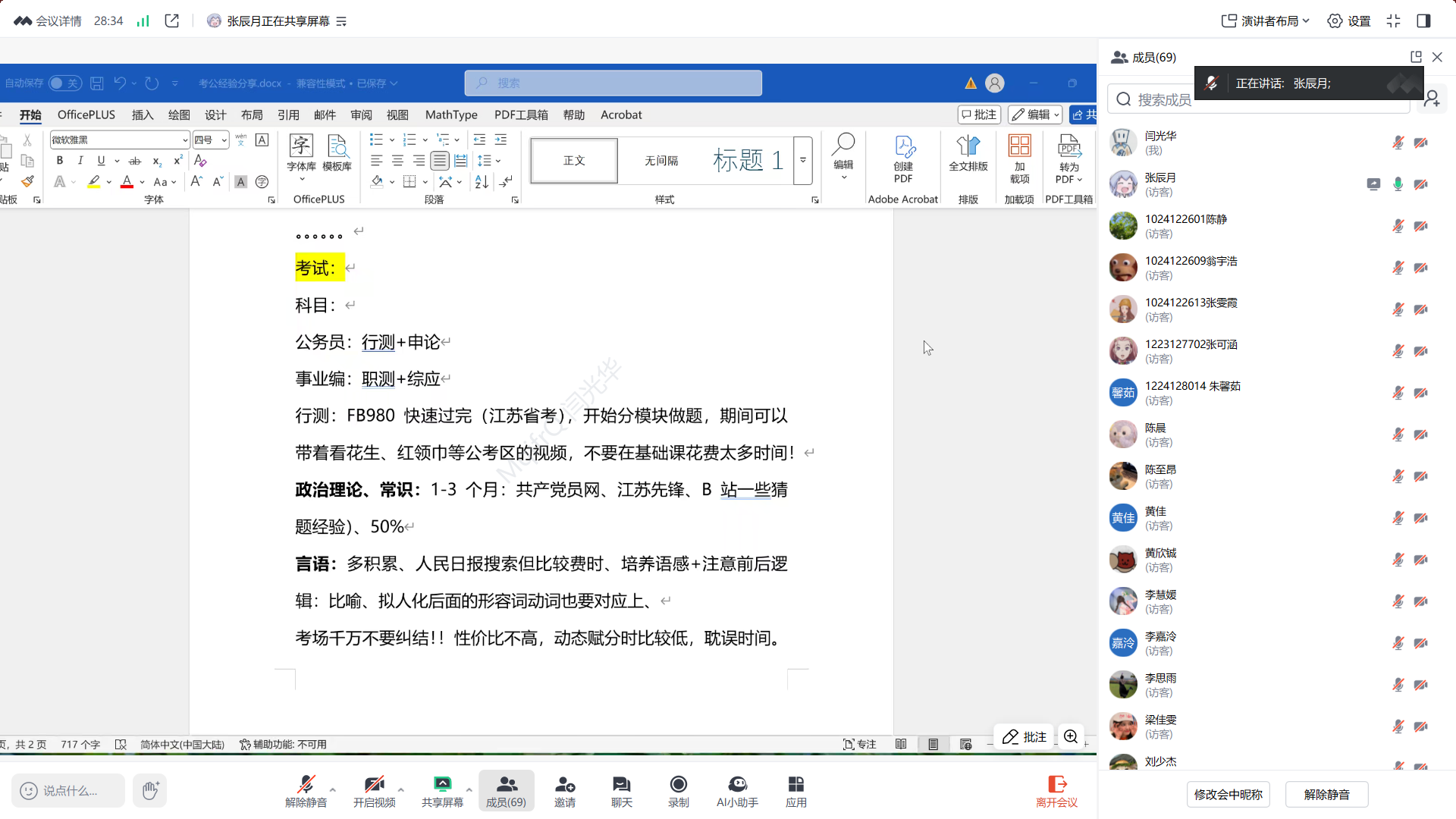 之后,梁佳雯学姐从实战角度出发,强调“选择大于努力”,建议优先选择限制条件多的岗位,合理权衡报考地区与发展需求。她建议考生做好规划,平衡好找工作与备考的关系,强调了报考岗位时限制条件的重要性。在行测学习上,她推荐分模块练习;申论学习则需多练真题,形成自己的解题逻辑。